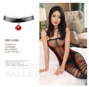 Be the first to review “(黑红拼色)复古线条开裆连身袜/N7548”